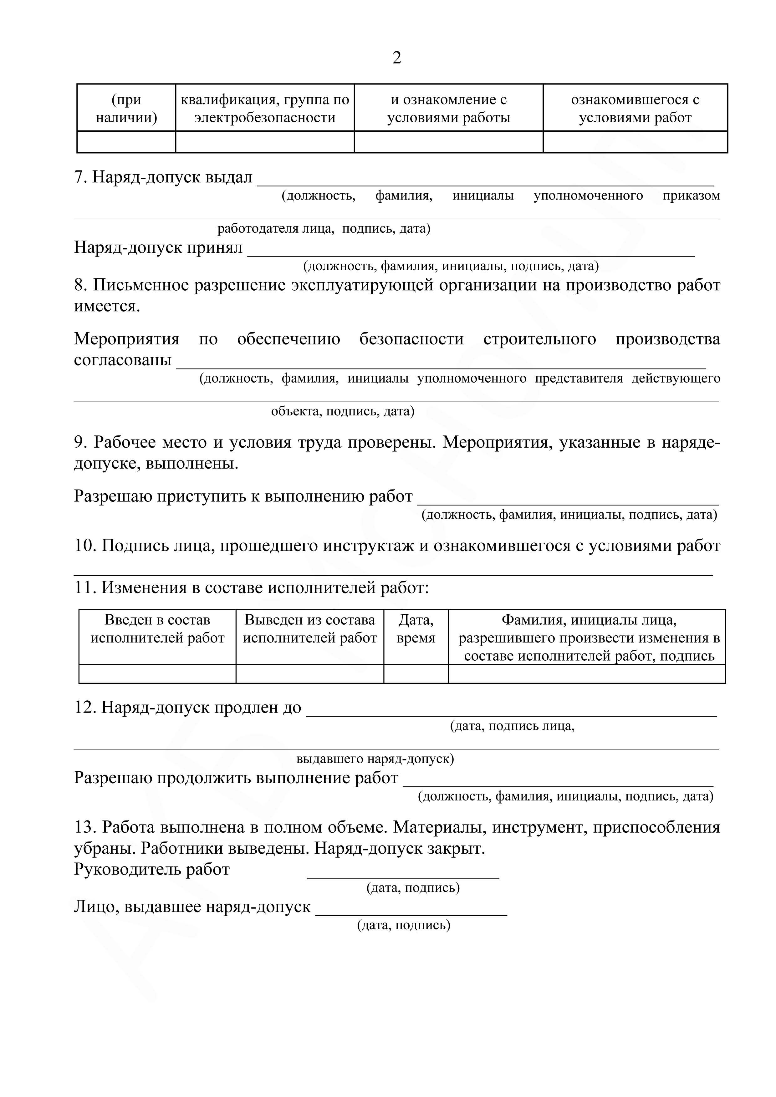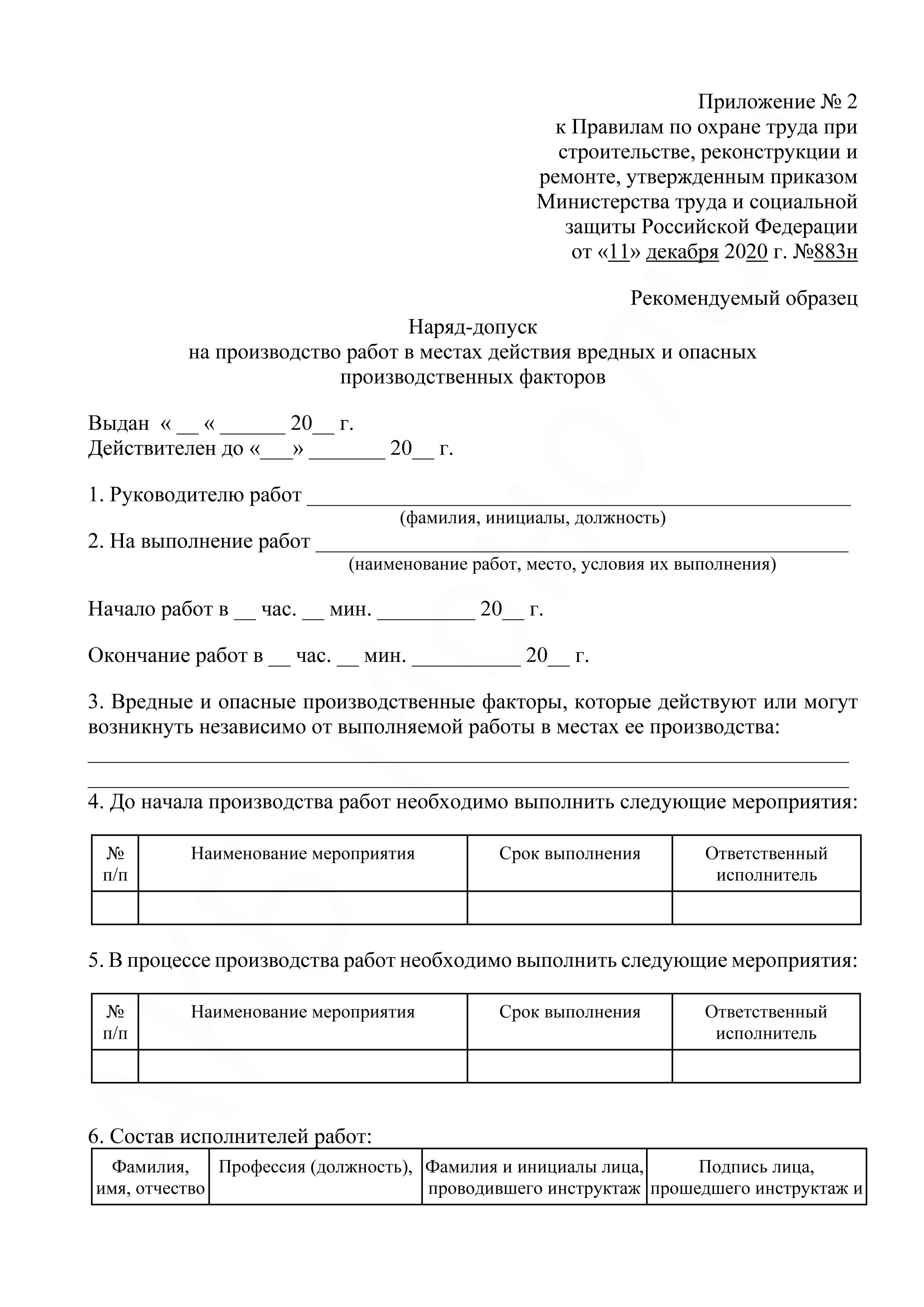 - Приложение №2. Наряд-допуск на производство работ в местах действия вредных и опасных производственных факторов
