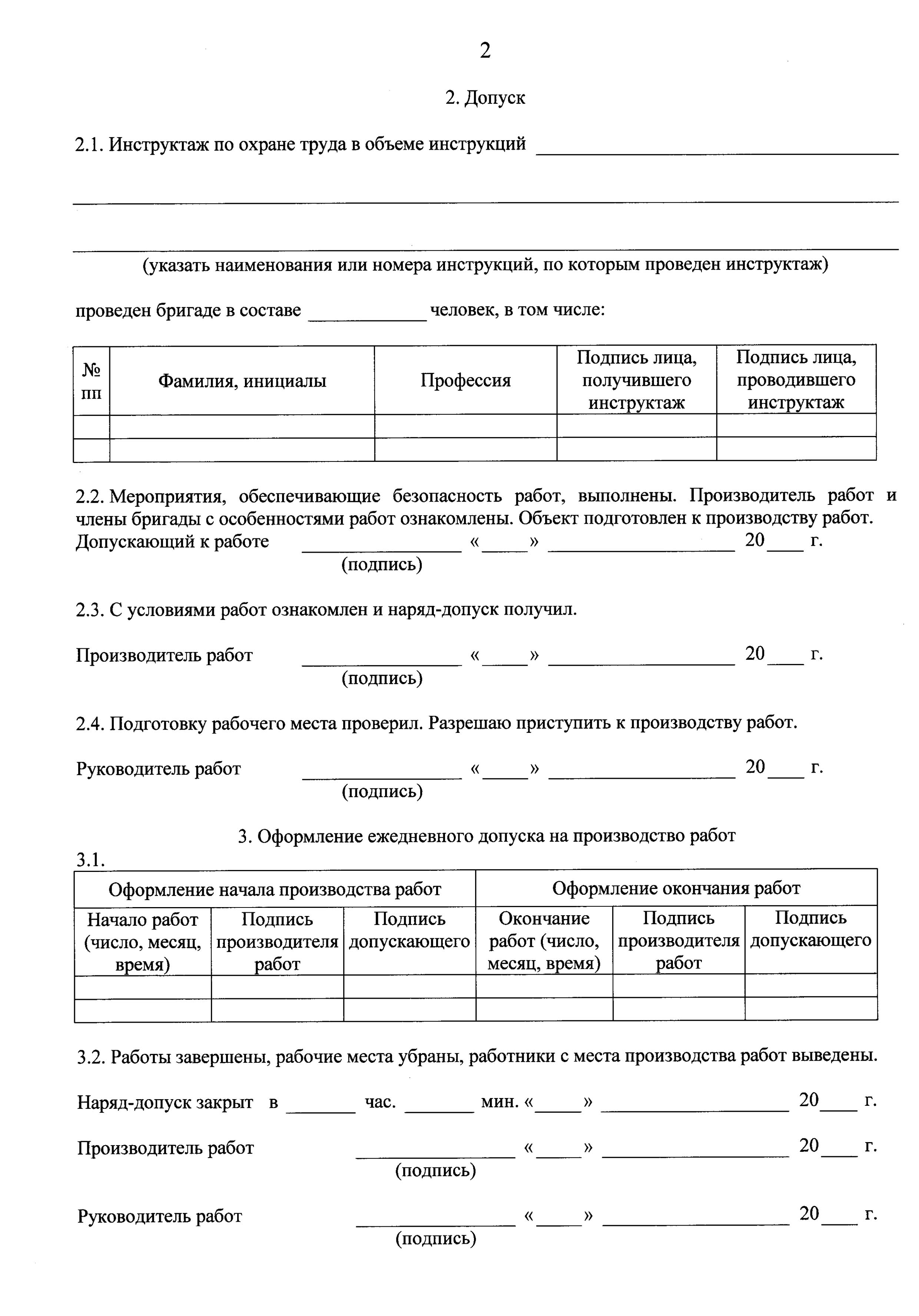 Наряд-допуск оформляется уполномоченными работодателем должностными лицами, ответственными за организацию и безопасное производство работ повышенной опасности. Порядок производства работ повышенной опасности, оформление наряда-допуска и обязанности должностных лиц, ответственных за организацию и безопасное производство работ, устанавливаются локальным нормативным актом работодателя.