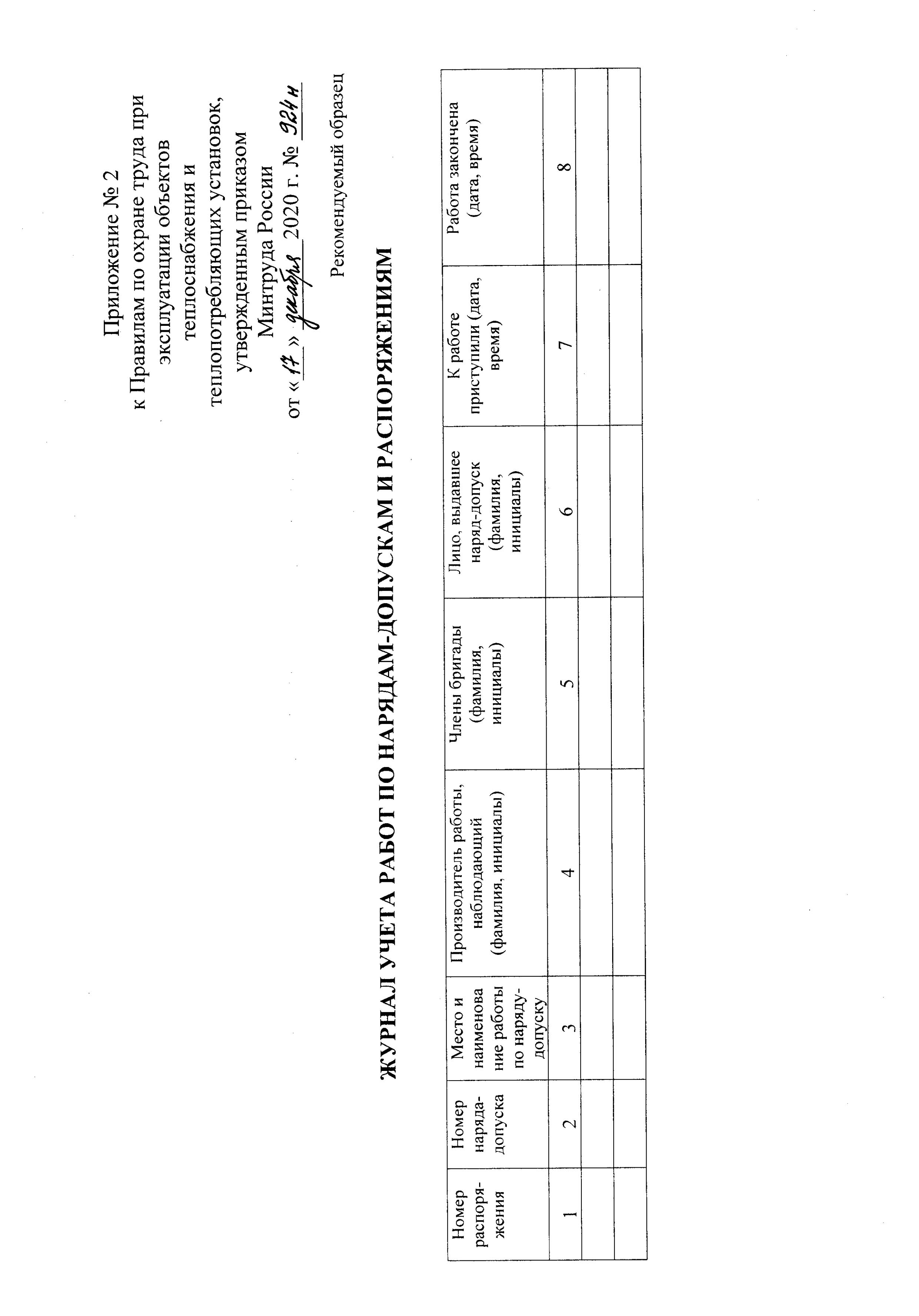 - Приложение 2. Журнал учета работ по нарядам-допускам и распоряжениям