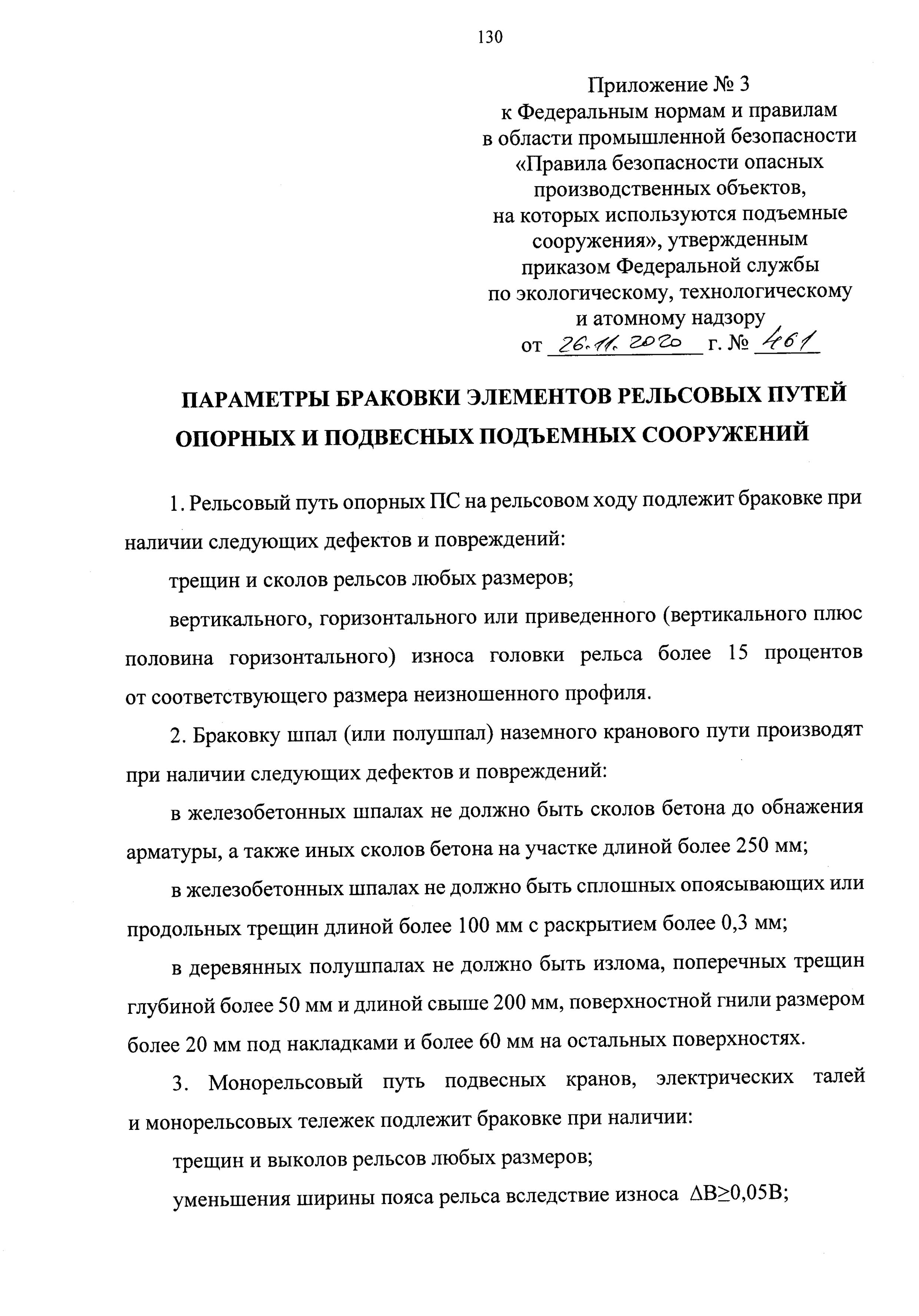 Приказ Ростехнадзора №461 от 26 ноября 2020 года