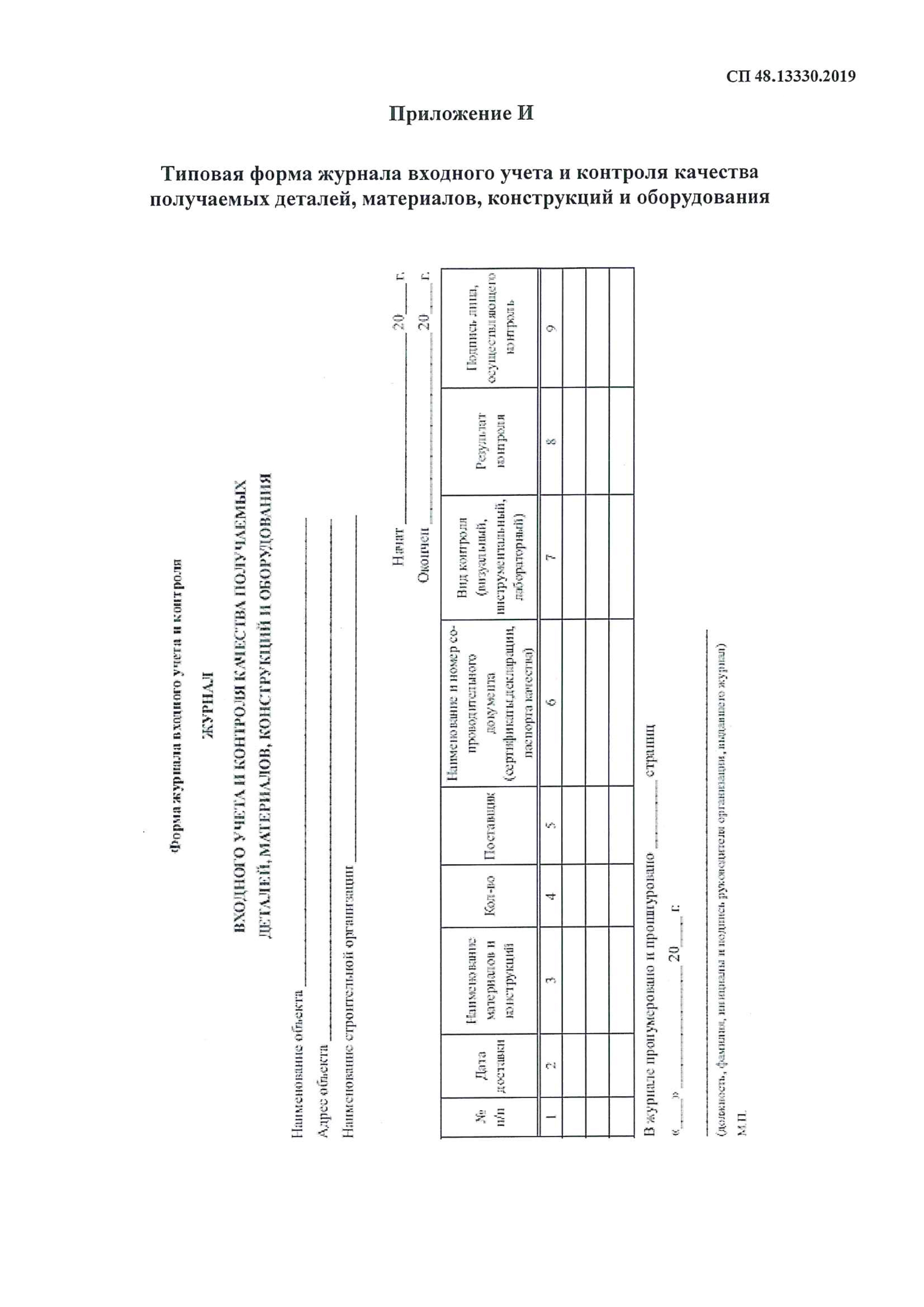 - Типовая форма журнала входного учета и контроля качества получаемых деталей, материалов, конструкций и оборудования